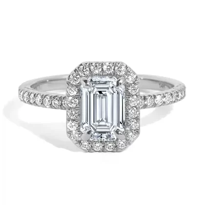 Emerald Shape Halo Diamond Ring