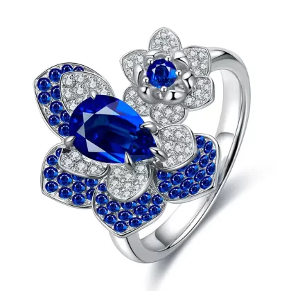 Flower Blue Sapphire Pure White Gold Ring