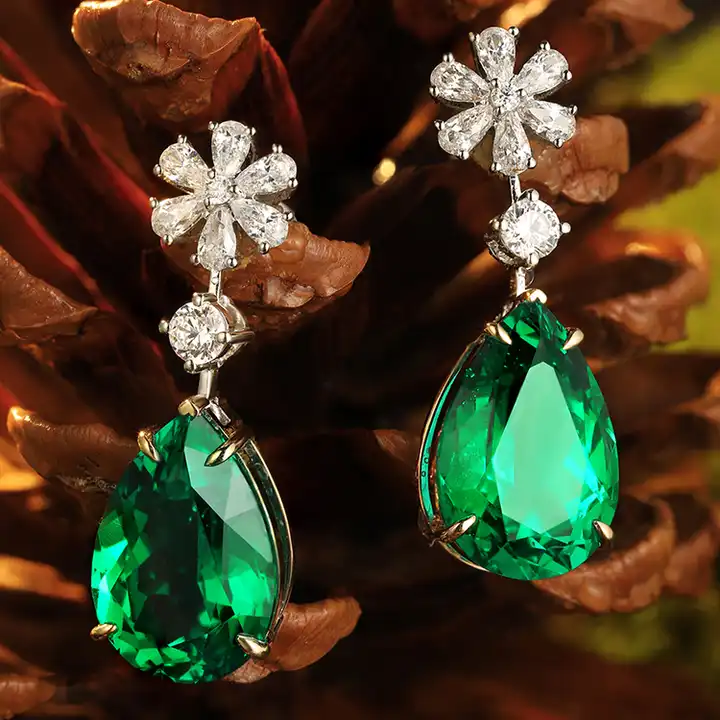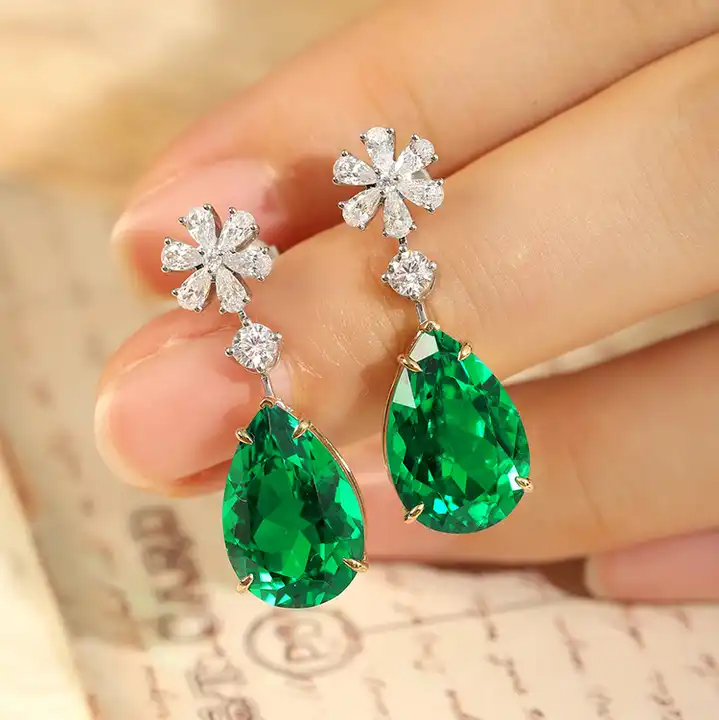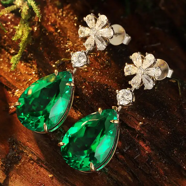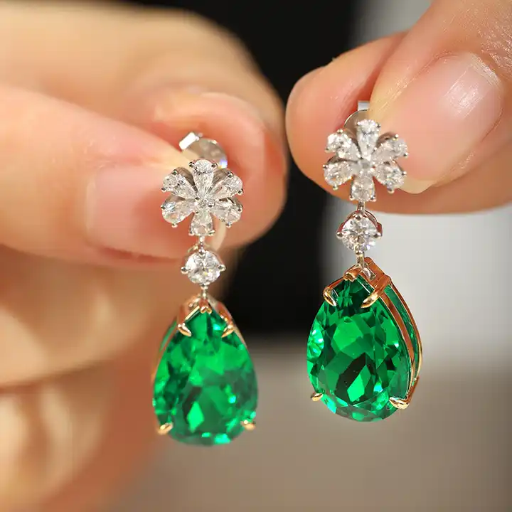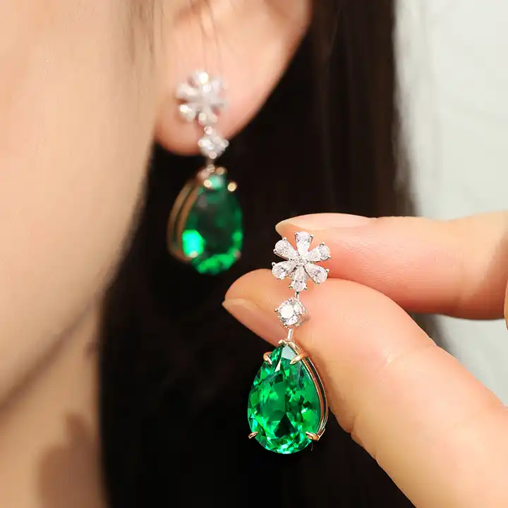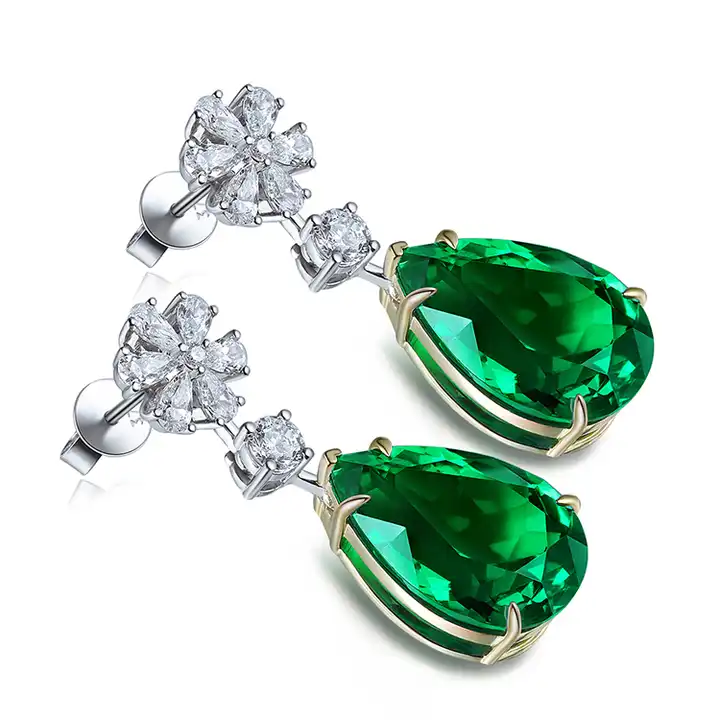 Pear Cut Emerald Diamond Elegant Wedding Bridal Women Gold Earrings